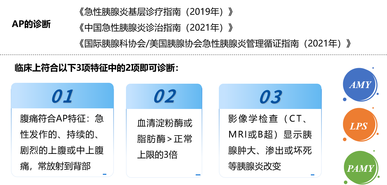 《重症急性胰腺炎预防与阻断急诊专家共识》指出AMY是急性胰腺炎的重要诊断指标之一。